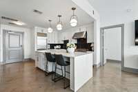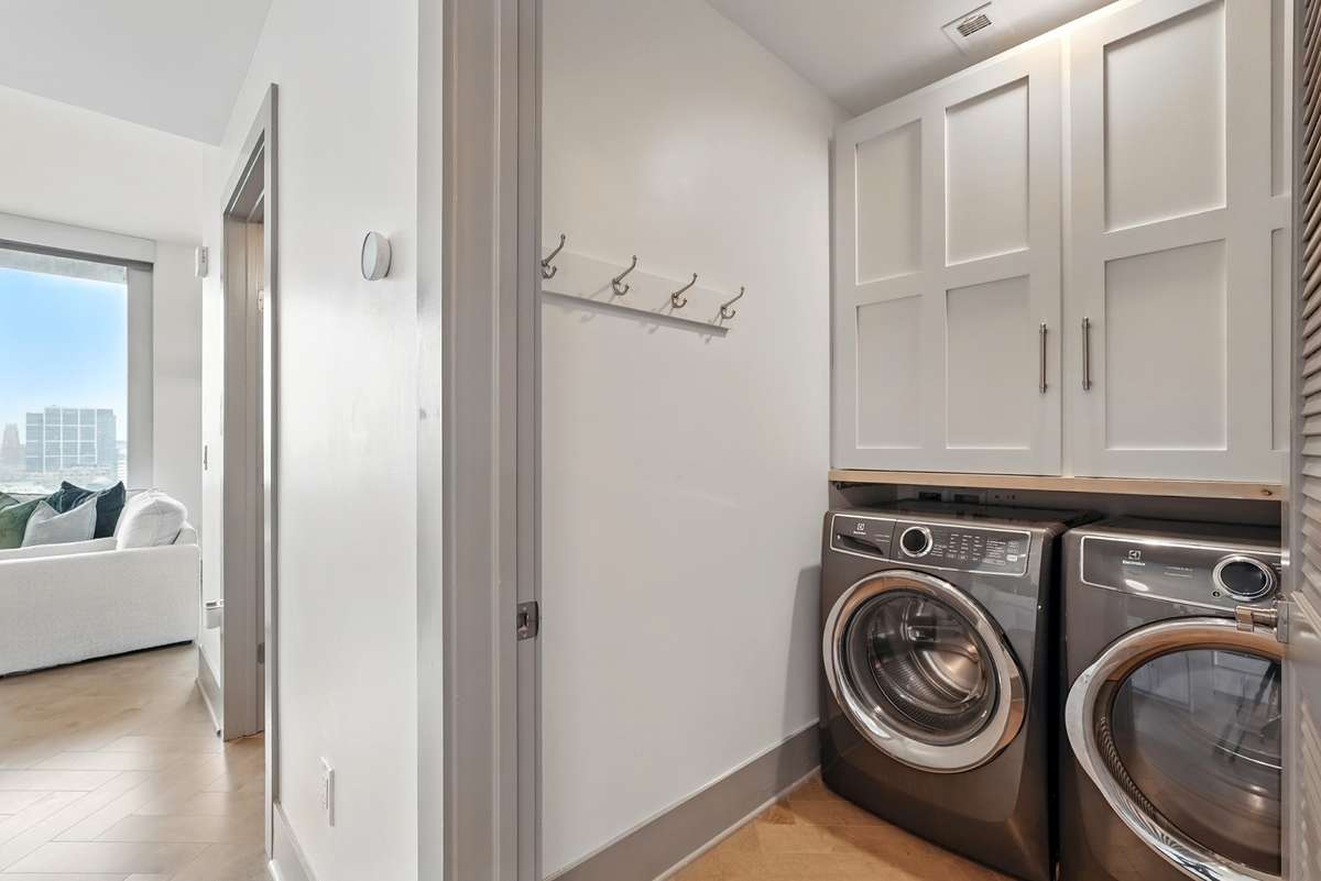 Offered fully furnished with premium Restoration Hardware pieces, this stunning 16th- floor residence at Broadwest delivers effortless, turnkey living with unmatched style and sophistication. As the largest floorp lan available, this spacious and thoughtfully designed condo features large living area, a custom wet bar with flex office or dining space, powder room, laundry room, walk- in closets, and a luxurious spa bath with freestanding tub. The gourmet kitchen boasts a Wolf gas cooktop, SubZero refrigerator, marble countertops and backsplash, and a waterfall island.