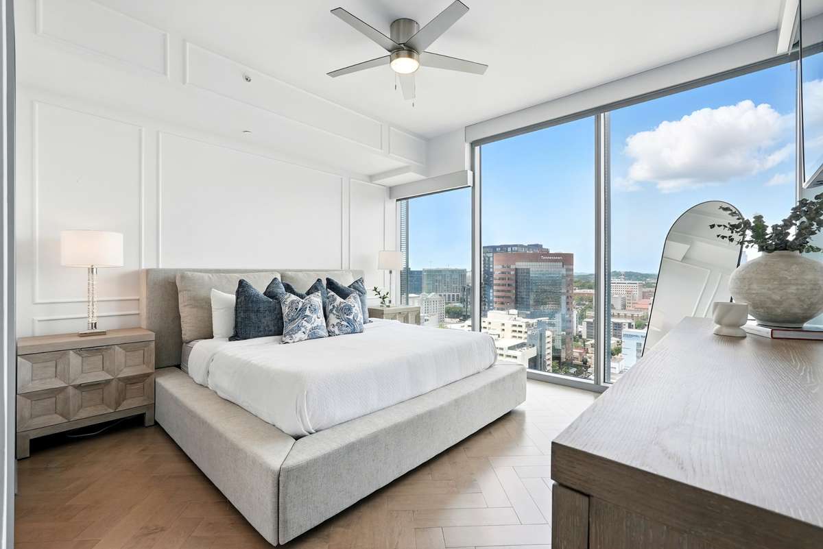 Residents enjoy access to resort- style rooftop amenities on the 34th floor—exclusive to owners—including a fitness center, steam/ sauna, golf simulator, billiards room, library, rooftop pool with cabanas, private dining room, lounge, and 360° views of Downtown Nashville. With a la carte services provided by the Conrad Hotel, this is luxury living redefined in the heart of Nashville.