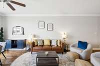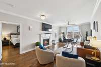 - Spacious open- concept living area with a cozy fireplace
