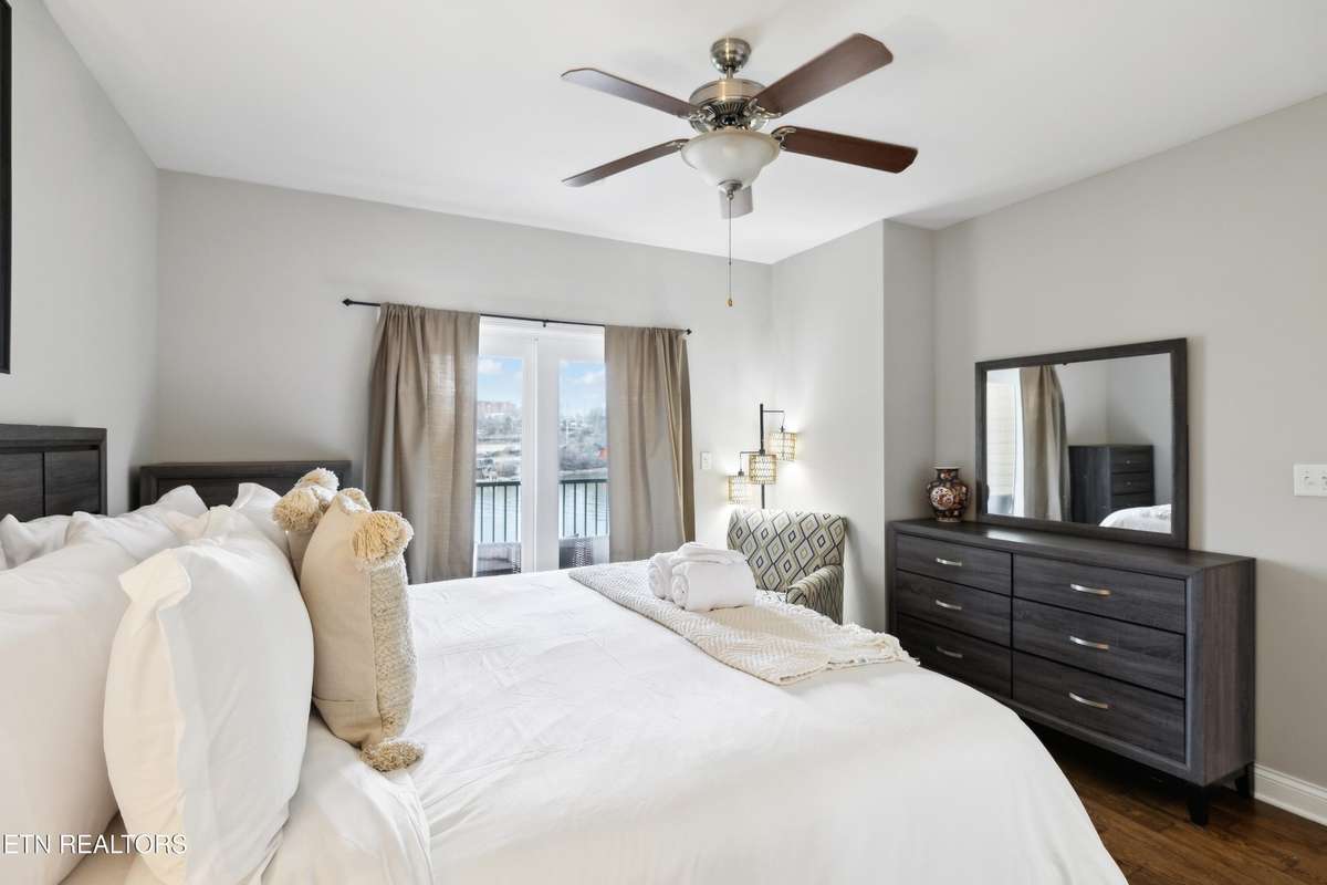 This beautiful waterfront condo offers the ultimate in city living with breathtaking views of the Tennessee River and the University of Tennessee Stadiumcheer on the VOLS from the comfort of your own home!