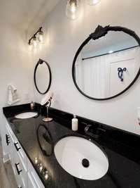 Your primary suite is a true retreat, complete with a tray ceiling, walk- in closet, and an ensuite featuring double vanities with granite, a stand- up shower, and thoughtful storage tucked just where you need it. Even the laundry room brings its A- game with extra cabinetry.