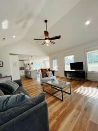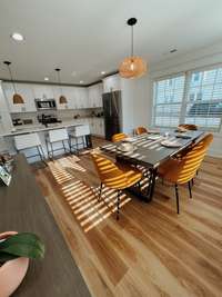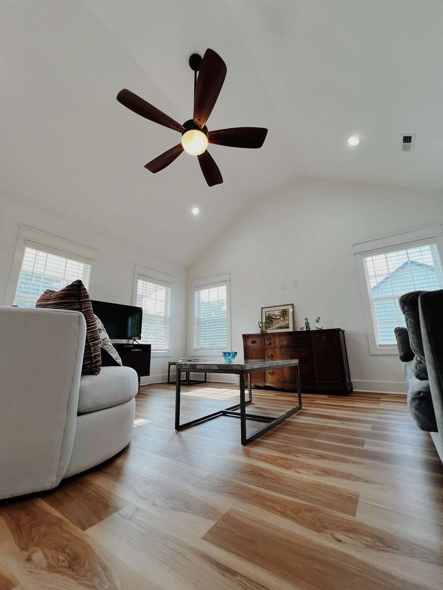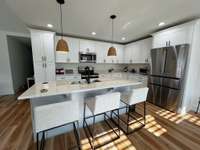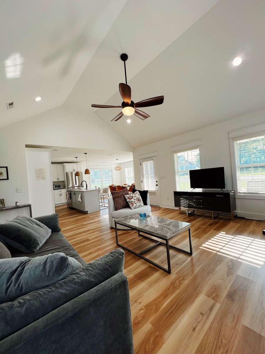Step inside to soaring vaulted ceilings, an open + airy layout, and sunlight that spills across luxury vinyl plank floors. The spacious eat- in kitchen steals the show — oversized island, room for everyone, and the heart- of- the- house energy every home needs.