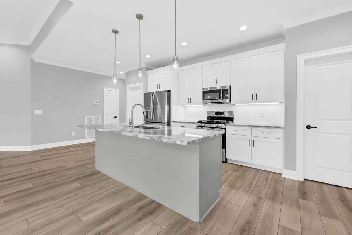 Spacious Open Floor Plan with Scenic Tree- Line Views! This beautiful home offers a seamless open layout on a stunning lot with peaceful views of the tree line. It features 3 Bedrooms and 2 full baths on the main level, plus a large bonus room with a half bath upstairs-- perfect for a home office, guest space, or playroom. Enjoy the comfort and efficiency of natural gas, including a gas log fireplace, gas stove, gas heat, and a tankless gas water heater. The chef' s kitchen is a true highlight, boasting two pantries, ample cabinetry, and a stainless steel appliance package. Ready to make it yours? Submit an offer now and choose your own finishes and colors!