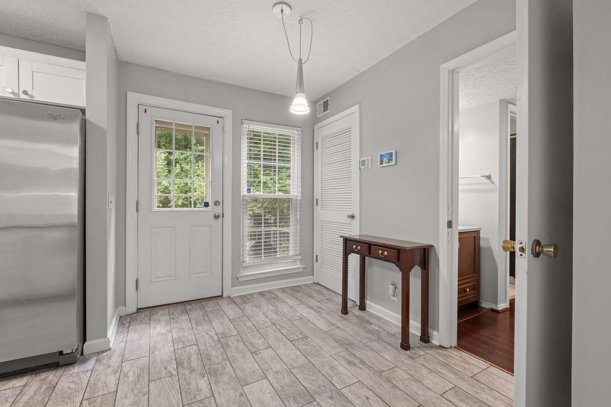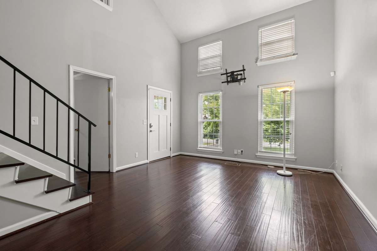 Beautiful 2 bed/ 2 bath townhome in a convenient location close to shopping and restaurants. Completely renovated with sand colored countertops and new cabinets with gold accents. Hardwood floors on main floor make a statement when you walk in the door! Two story living space with loft and tons of natural light. High vaulted ceilings in the living area add ambiance and a much larger feel for the area. Imagine using this loft as your home office or maybe bonus space! Has decidated driveway with ample parking. All stainless steel appliances remain as well as the washer and dryer. Wood blinds on every window remain. Backs up to wooded area for privacy. And the $ 60 HOA fee includes lawn maintainence and trash pickup!