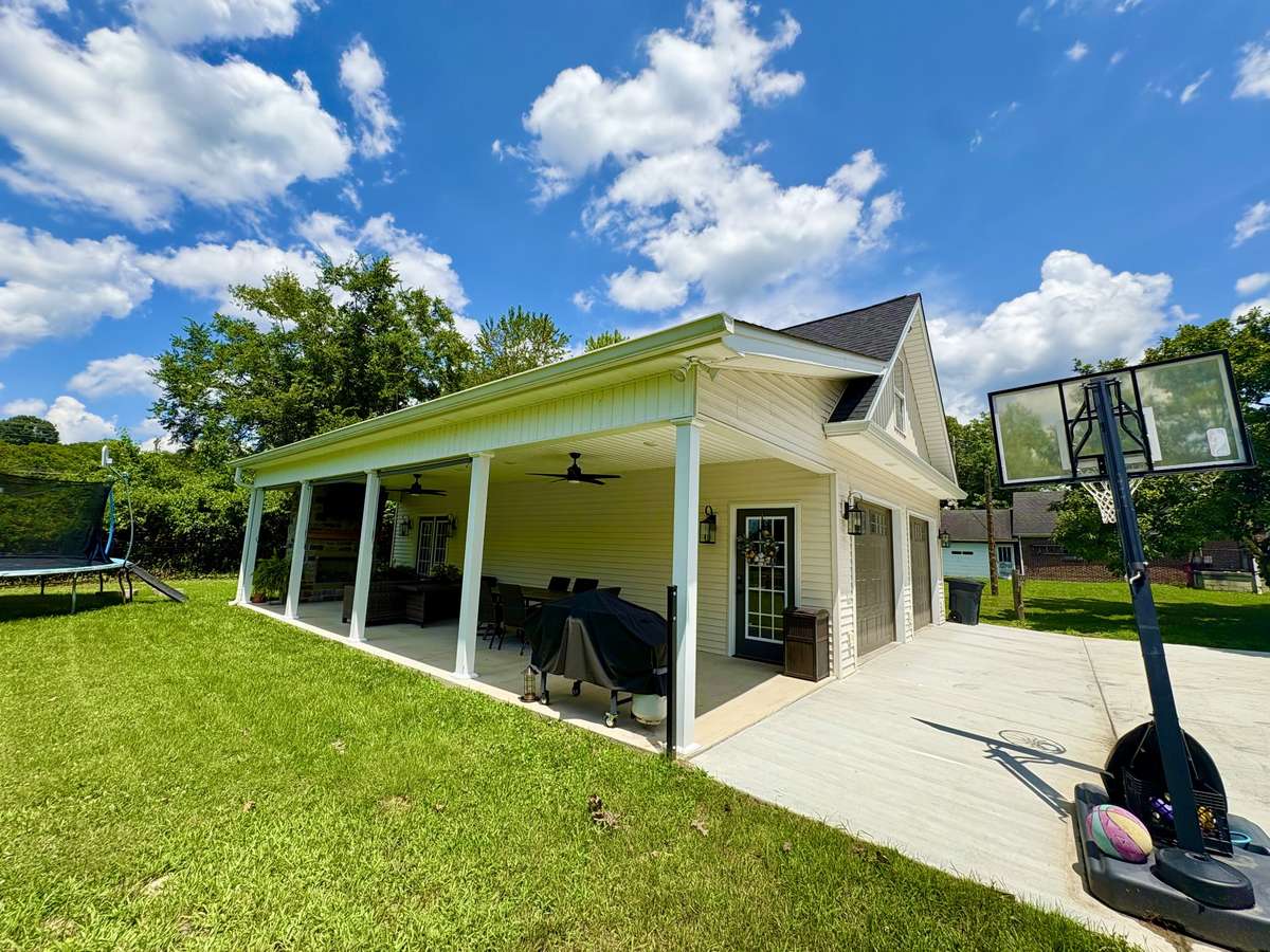 Step outside to a brand new concrete driveway with a convenient turnaround, leading to a detached garage that’s so much more than just storage! This fully functional garage includes a full bathroom, bedroom, and an unfinished upstairs with endless potential—think guest suite, home office, or game room. You’ll also enjoy the covered outdoor space featuring a stunning stone fireplace—ideal for relaxing or entertaining with loved ones. The fenced- in backyard provides a safe and private space for children, pets, or peaceful outdoor living.