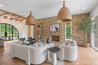 Designed for both everyday living and grand entertaining, the residence offers a three- car garage with a custom porte- cochère, and a heated gunite infinity- edge pool, spa, and firepit—truly an entertainer’s dream.