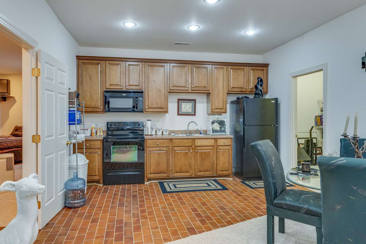 Great room and lower- level bonus room/ bedroom both feature gas- log fireplaces. Finished basement provides separate living quarters with its own kitchen, bedroom/ bonus room, bath, and garage.
