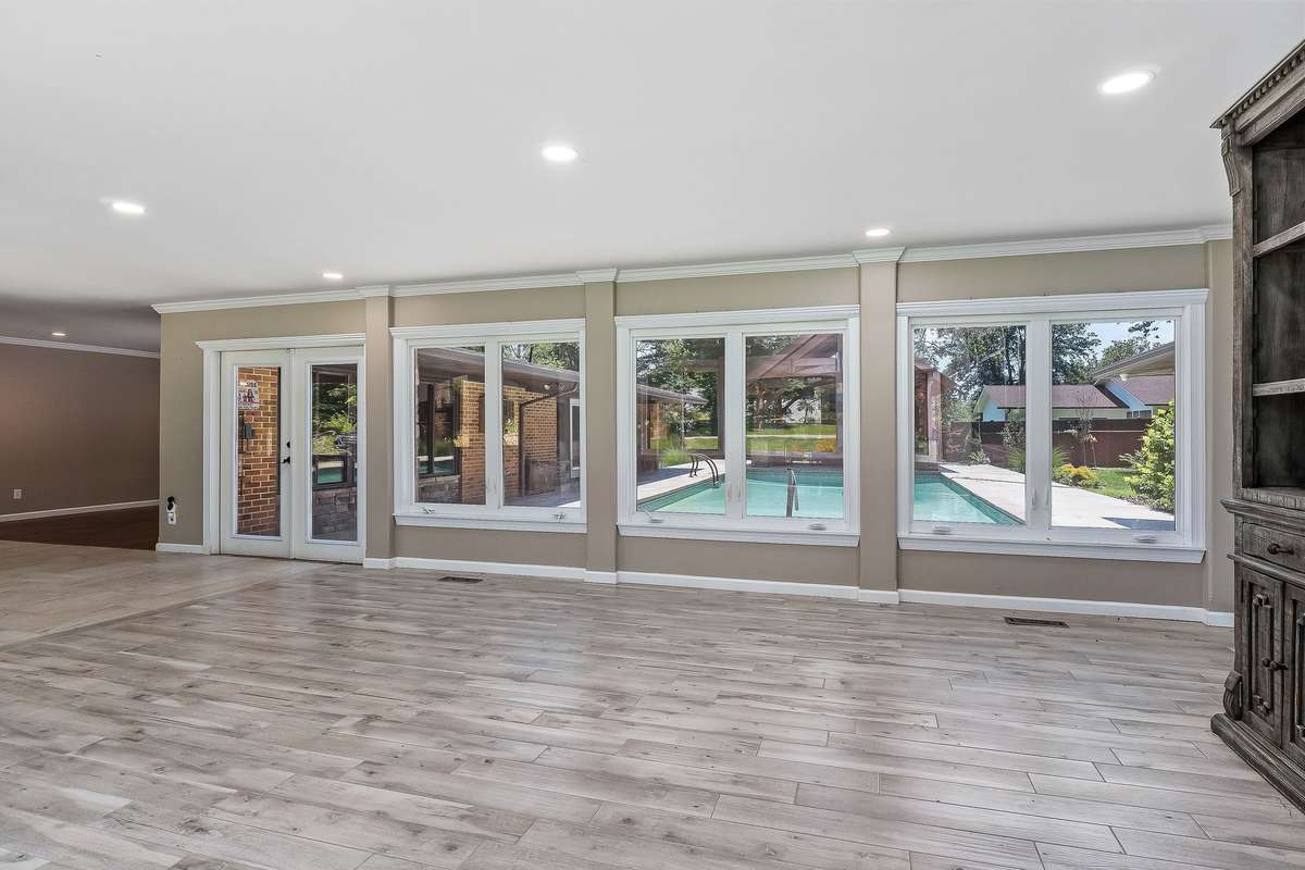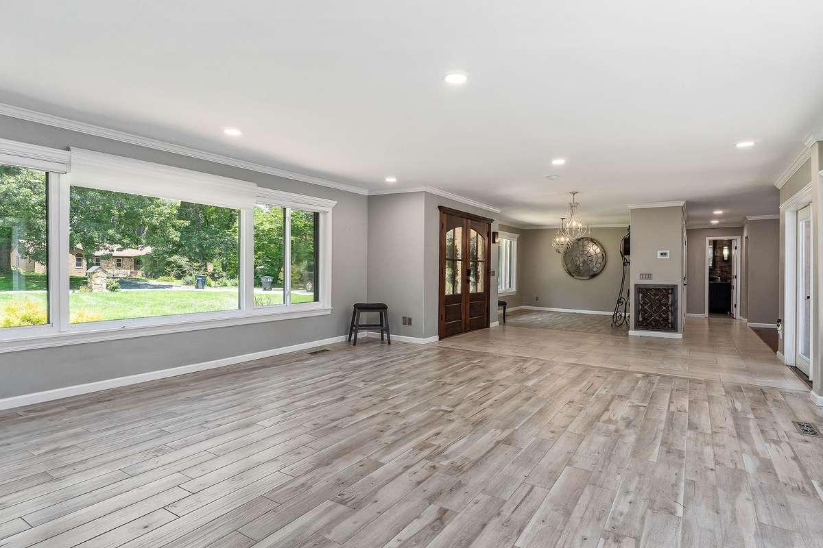 This fully remodeled, single- level brick ranch offers over 3, 600 square feet of luxurious living space, perfectly crafted for both entertaining and everyday comfort. Inside, two expansive living areas and an open formal dining room provide ample space for gatherings. The true chef’s kitchen boasts layered granite countertops, a massive island, double ovens, smart appliances, a wet bar, pantry, and travertine tile backsplash, making it both stylish and highly functional. The home includes four spacious bedrooms and three and a half bathrooms, along with a private lounge that opens onto a serene Trex deck—ideal for unwinding in privacy. Outdoors, discover a backyard paradise featuring a stamped concrete patio around a 20x40- foot pool with an 11- foot deep end. The fully fenced yard also includes an outbuilding, water features, and a stunning covered outdoor kitchen, complete with leathered granite countertops, a stone fireplace, and built- in grills and appliances.