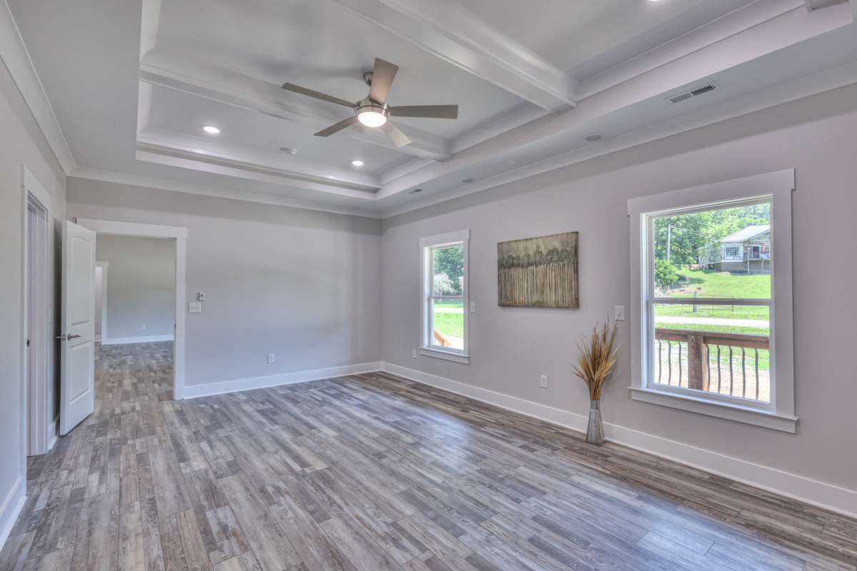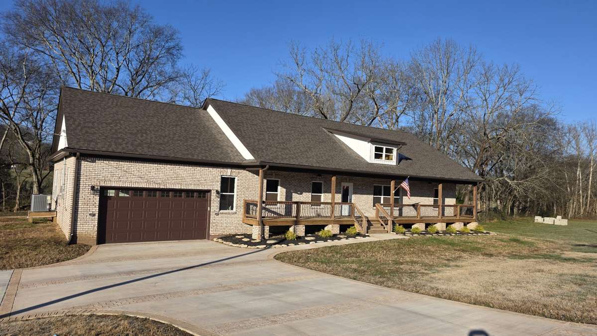 4. 875% Sellers and lenders rate buy- down special fixed for the life of the loan. Beautiful new construction home on 2. 25 acres. All rooms have 9- foot ceilings with about a 15- foot vault in the living room. Brick home with large rooms throughout. This is one of my favorite floor plans with no wasted space. From the front door, walk into the large vaulted living room with two large bedrooms on the right and a large bedroom suite on the left. Each bedroom has good space, closets, and built- in shelving for kids' toys. The main bedroom features 12 built- in drawers in the walk- in closet, along with shoe and personal item cubbies. Each of the two bathrooms features a makeup vanity table, and a half bath is located as you enter from the garage. Park in your large garage and walk into a house designed for convenience. You will find a changing area for taking off your coat and shoes, and with a large sunroom to your left and the main gateway to the house on the right. All custom cabinets and vanities with granite tops for quality and convenience. This house features a spacious covered porch and patio, perfect for enjoying quality family time. High- end 20- mil layer vinyl plank flooring throughout, with no carpet. The garage floor has been sealed, and the crawl space was encapsulated. The kitchen has a good- sized pantry. This property has a big yard with a wet- weather creek in the back. Welcome to Hampshire, TN, the little Gatlinburg of the south, but without the traffic and no city taxes. As a resident of Hampshire myself, I can tell you the people are great, and so are the churches and schools. The all- in- one unit school is so convenient for families with kids, K- 12