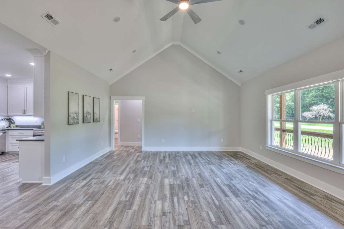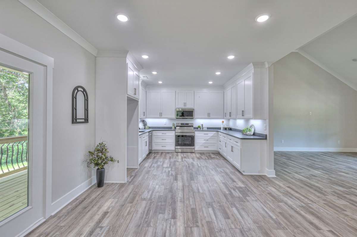 4. 875% Sellers and lenders rate buy- down special fixed for the life of the loan. Beautiful new construction home on 2. 25 acres. All rooms have 9- foot ceilings with about a 15- foot vault in the living room. Brick home with large rooms throughout. This is one of my favorite floor plans with no wasted space. From the front door, walk into the large vaulted living room with two large bedrooms on the right and a large bedroom suite on the left. Each bedroom has good space, closets, and built- in shelving for kids' toys. The main bedroom features 12 built- in drawers in the walk- in closet, along with shoe and personal item cubbies. Each of the two bathrooms features a makeup vanity table, and a half bath is located as you enter from the garage. Park in your large garage and walk into a house designed for convenience. You will find a changing area for taking off your coat and shoes, and with a large sunroom to your left and the main gateway to the house on the right. All custom cabinets and vanities with granite tops for quality and convenience. This house features a spacious covered porch and patio, perfect for enjoying quality family time. High- end 20- mil layer vinyl plank flooring throughout, with no carpet. The garage floor has been sealed, and the crawl space was encapsulated. The kitchen has a good- sized pantry. This property has a big yard with a wet- weather creek in the back. Welcome to Hampshire, TN, the little Gatlinburg of the south, but without the traffic and no city taxes. As a resident of Hampshire myself, I can tell you the people are great, and so are the churches and schools. The all- in- one unit school is so convenient for families with kids, K- 12