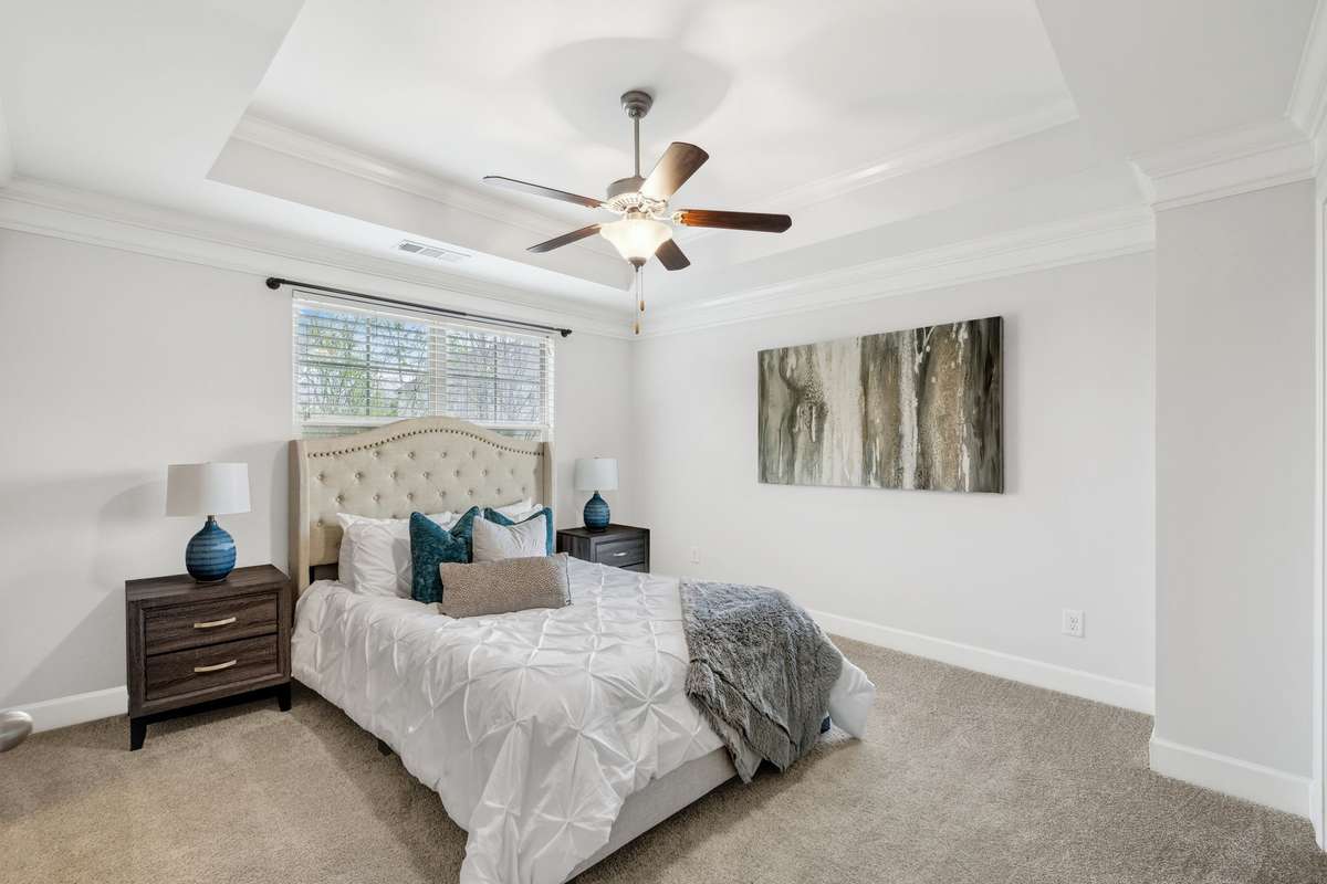 Spacious primary bedroom with trey ceilings, en suite and big walk in closet
