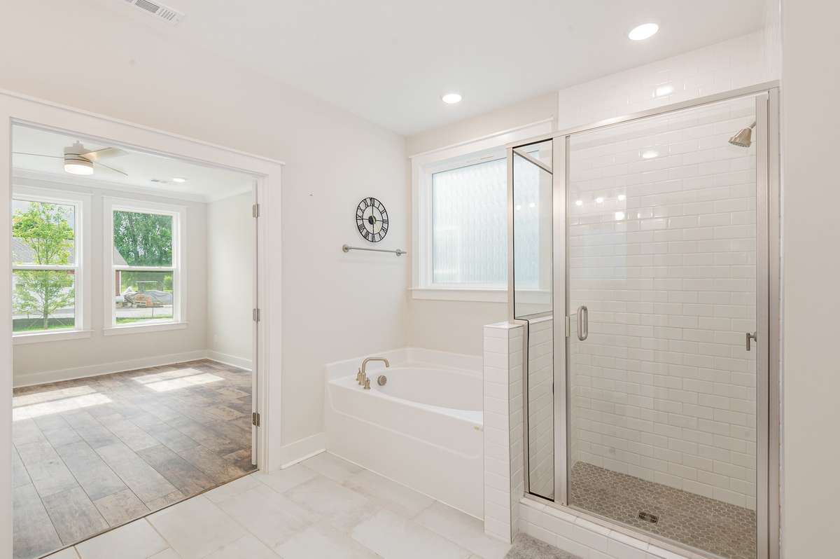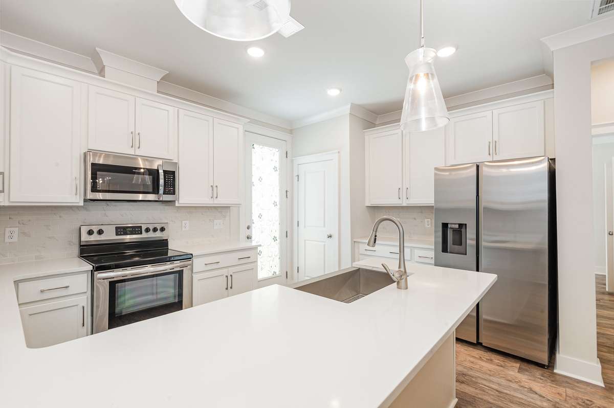 Live the lifestyle you’ve been looking for in this upgraded charmer—where every detail is designed for families who want style, convenience, and room to grow. Step in from the covered front porch to an airy main level crowned with elegant moldings and warm Beachwood- tone laminate floors. The open kitchen showcases a farmhouse sink, quartz counters, white- and- gray cabinetry, and pro- style stainless appliances—all perfectly framed by designer lighting and seamless recessed lighting. The drop- zone and shoe bench off the garage keep backpacks, sports gear, and leashes tidy, while the laundry room’s direct access to the oversized walk- in closet means fewer trips up and down the stairs. Unwind in the downstairs owner’s suite with a spa- inspired bath: separate soaking tub, floor- to- ceiling subway- tiled shower, and dual quartz vanities. Upstairs, a spacious loft—with double open railing—makes an ideal playroom, media hub, or homework zone, flanked by two secondary bedrooms and a full bath. Out back, the covered patio invites weekend grilling and sunset lounging. Residents of Kingsbury enjoy a resort- style pool, playground, and fenced dog park, all within minutes of top- ranked schools, everyday retail, dining, and major commuter routes. If you’re seeking modern farmhouse flair, thoughtful storage, and amenities that keep everyone ( including Fido) happy—welcome home!