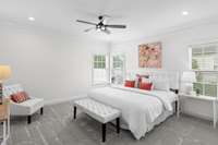 The primary suite features abundant natural light and ample room for resting and relaxing. The primary bathroom offers a spa- like quality with brand new double vanities and mirrors. Upstairs, you will find two spacious bedrooms that share a Jack and Jill bathroom.