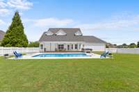 Outside, the crystal- clear pool is ready for you to enjoy. The covered deck offers the ideal spot for outdoor dining, and the hot tub provides the ultimate way to relax and unwind at the end of a long day.
