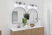 The primary suite features abundant natural light and ample room for resting and relaxing. The primary bathroom offers a spa- like quality with brand new double vanities and mirrors. Upstairs, you will find two spacious bedrooms that share a Jack and Jill bathroom.
