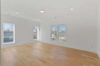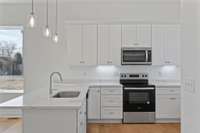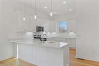 Introducing a stunning new home with 4 bedrooms and 3 full bathrooms, located on a corner lot. This property boasts an abundance of quartz countertops and kitchen cabinets, beautiful vinyl flooring throughout, and tiled showers. Plus, it features a fantastic mudroom and a front balcony with downtown sky views!