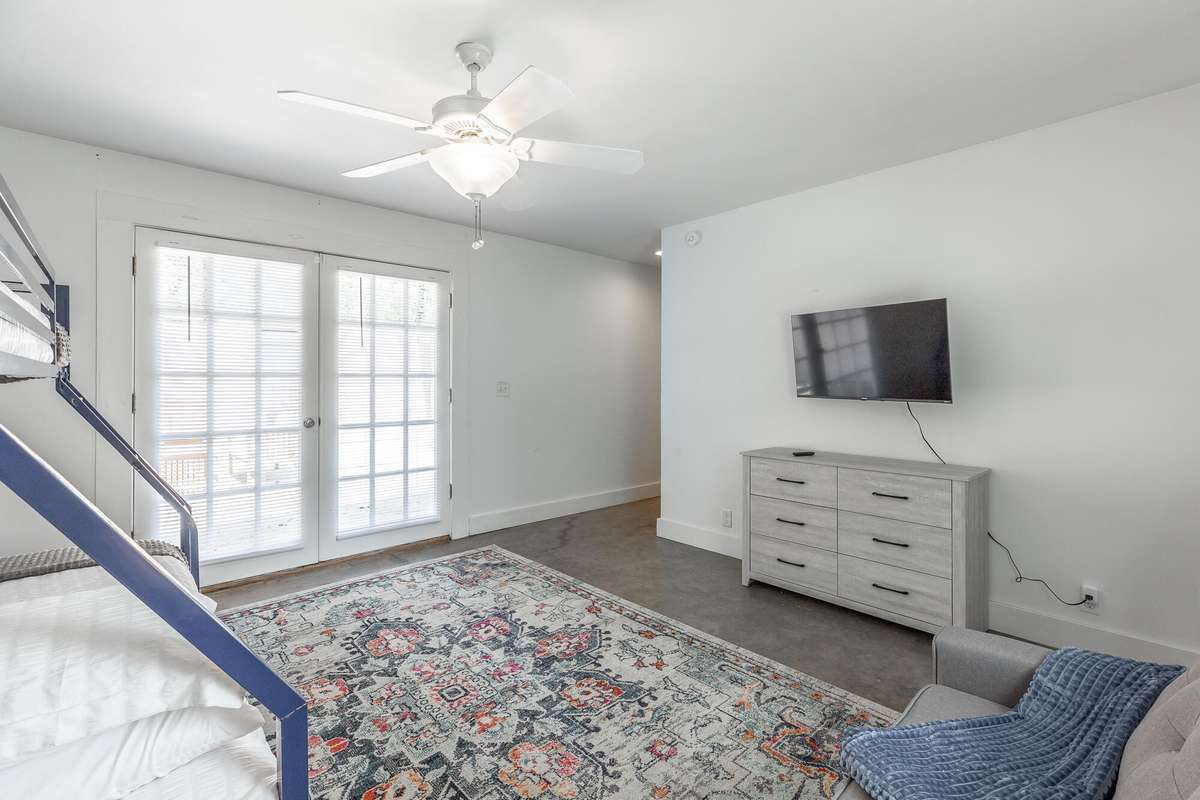 Upon entry, you' re welcomed into a spacious living area adorned with vintage details and abundant natural light.