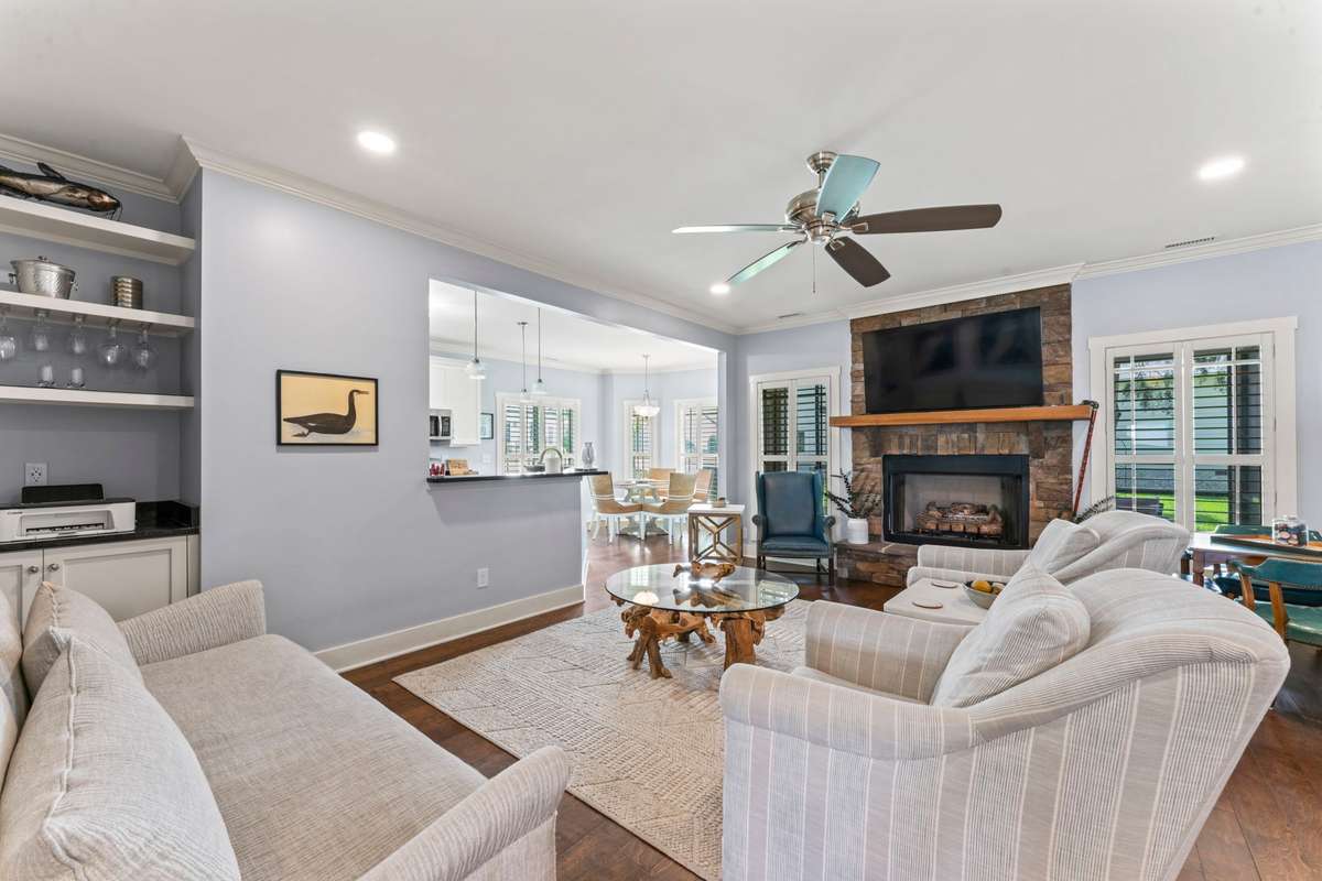 Welcome to 160 Anderton Dr – a spacious and beautifully maintained 4- bedroom, 2- bath highly desirable corner unit in a golf cart and lake community! This home features all hardwood floors downstairs, plantation shutters throughout, and a gas fireplace for cozy evenings. The kitchen is equipped with a gas stove, and all appliances remain for your convenience.