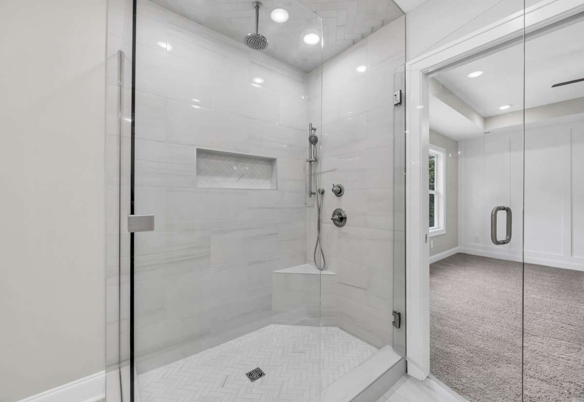 Primary Bedroom features a en-suite bathroom with tile shower, double vanities, and a walk in closet