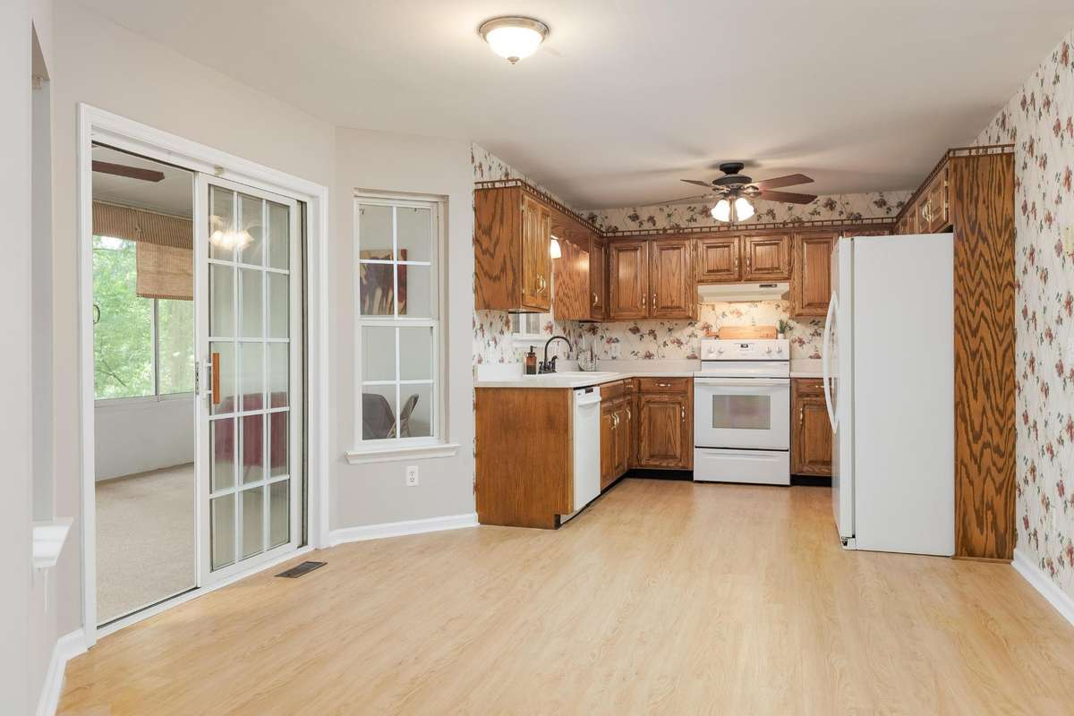 The home also features a covered front porch and a sunroom full of windows overlooking a serene, wooded backyard—ideal for enjoying nature in any season. Quiet location with limited traffic. This home has the charm and updates you' re looking for in a peaceful, established neighborhood.