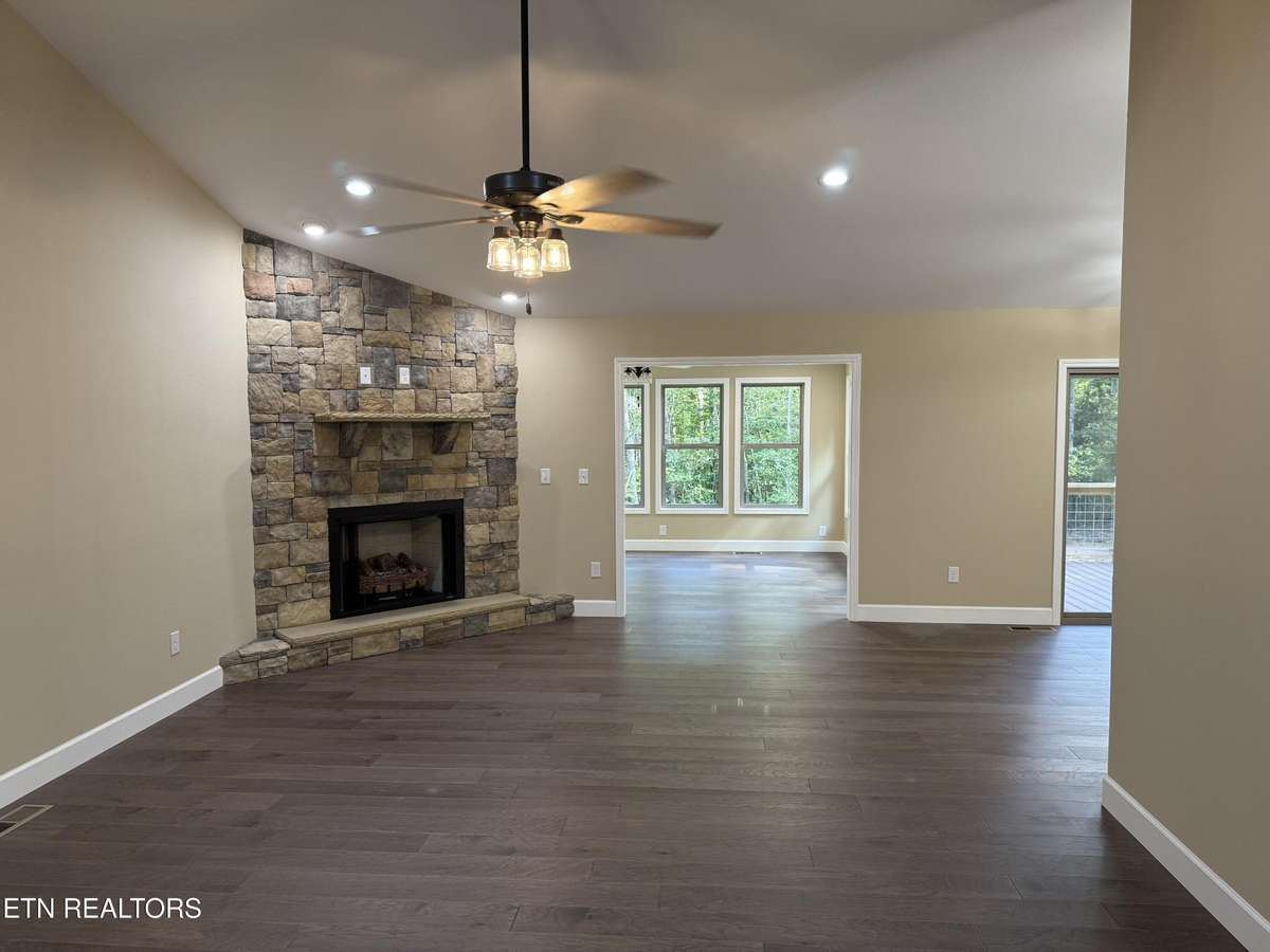 ' ' NEW CONSTRUCTION ' ' Located on a 1. 2 Acre Wooded Creek lot. This is a 3BR/ 2BA + Sunroom 1818 sq. ft. home. It has a spacious Open Floor plan w/ Stone Gas Log Fireplace in Living Room. Wood floors throughout, Tiled floors in bathrooms and laundry. Solid Wood Cabinetry, Granite tops on the Kitchen Counters, Breakfast Bar and Bathroom Vanities. Tiled shower in the Master Bath & Double Sinks. Trey Ceilings in Master BR. Stainless appliances in Kitchen incl. Microwave, Dishwasher, Gas Stove/ Oven. Natural Gas Heat and 40 Gallon Gas Water Heater. Vaulted Ceilings in Great Room & 2nd BR. The Deck has Trex flooring. Natural Gas, City Water & High Speed Fiber Optic Internet Service ( available. ) Sod in front yard and paved driveway soon to be completed. Located in Cumberland Cove about a 15 min drive to Cookeville or Crossville where you have all amenities. Approximate Completion Date of September 2025.