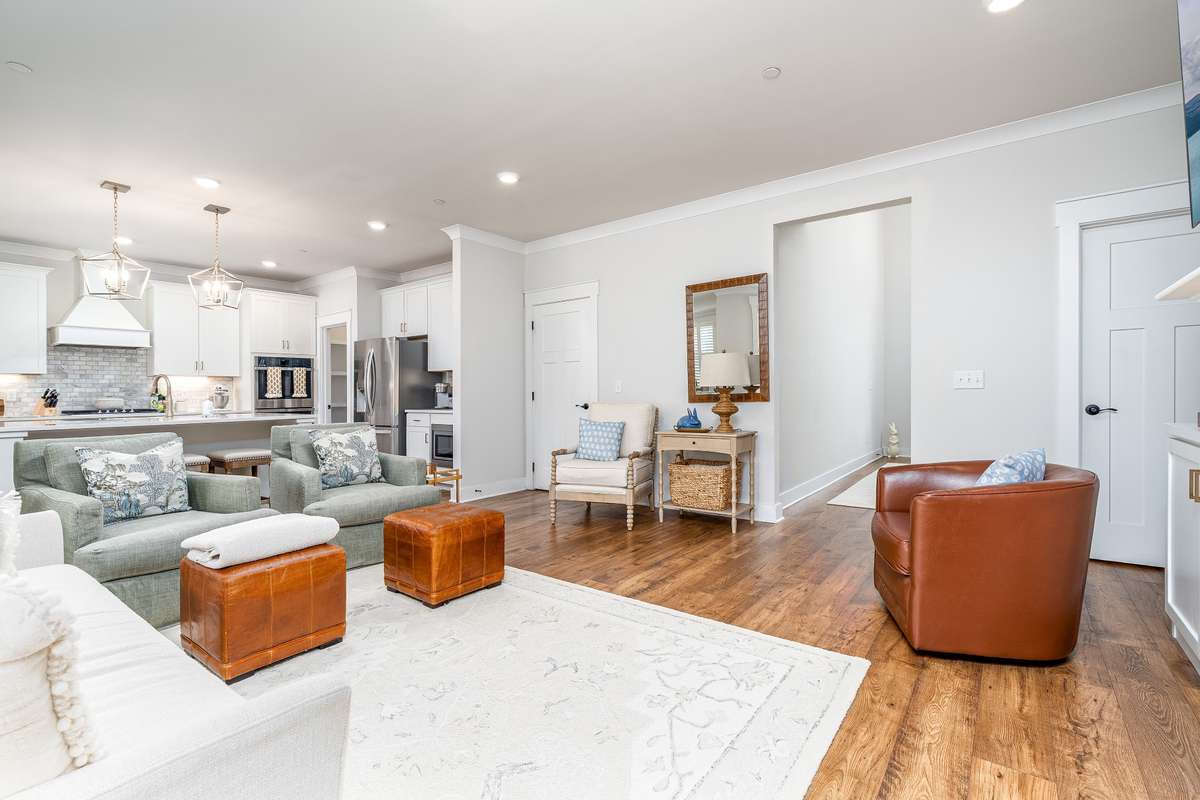 Beautiful, elegant home and only 4 years old! Make your entrance into the grand 2 story foyer which leads to the oversized and open living space of the Family Room, Kitchen and Dining area combo w/ premium, easy care LVP flooring and boasting custom shutters and blinds. The Kitchen features an elevated experience with Quartz counter tops, tiled backsplash, walk in pantry, all SS appliances, including double oven and an oversized sit down island. The family room offers a gas fireplace with auto start and built in custom cabinets flanking each side. Eating at the Kitchen table you are surrounded with an abundant of windows for natural light and views of the beautiful, level, tree lined back yard. Located on the main level is the Primary Bedroom suite with a spacious walk in closet, soaking tub, double Quartz vanity, large tiled and separate shower with glass surround. Upstairs you will find 4 more bedrooms AND a spacious Bonus Room, Hobby Room, or Work office. One bedroom upstairs offers a full bath suite. The Laundry Room and drop zone are located conveniently right off the kitchen and features cabinets for more storage. The covered back porch and concrete patio bring the living outdoors. This house is designed for family living! Make it your HOME SWEET HOME ! See VIDEO: under " documents and links" at bottom of page!