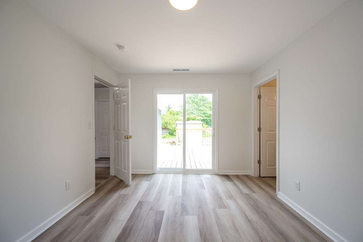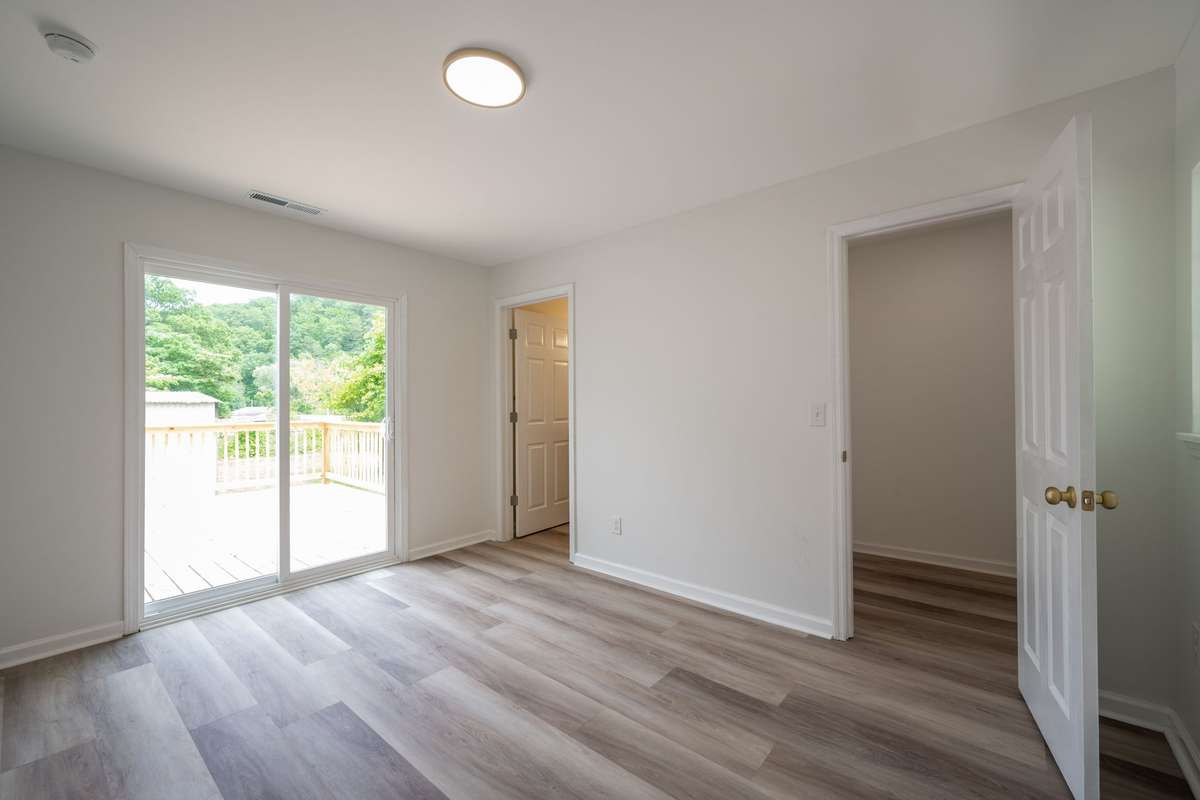 The sunlit master bedroom offers direct access to its own porch through elegant sliding glass doors—perfect for morning coffee or quiet evenings. The flat, expansive yard is a true gardener’s dream, ideal for growing, entertaining, or relaxing in nature.