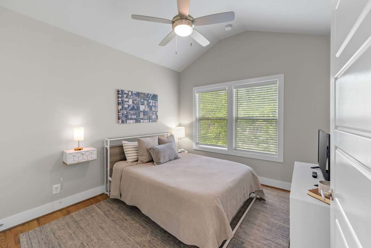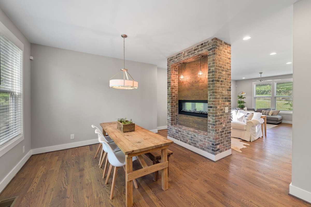 Spacious and stylish, this home features an open floor plan with hardwood floors, large windows, and a stunning double- sided brick fireplace between living and dining areas. The kitchen offers granite countertops, and stainless appliances. Upstairs: a private primary suite with walk- in closet, plus two more bedrooms and full bath. Laundry also on bedrooms level! The finished walk- out basement includes a 17x26 media/ game room with built- in banquette and a 12x7 fitness room—ideal for today’s lifestyle. Located just minutes from Downtown Nashville, GEODIS Park, and Nolensville Pike dining.