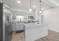 TENANT OCCUPIED - Step into modern living with this beautifully maintained 2- bedroom, 2. 5- bath townhome built in 2022. The inviting entry foyer leads to an open- concept main level featuring stylish LVP flooring throughout. The kitchen boasts granite countertops, a spacious island with a counter- height breakfast bar, and stainless steel appliances—including refrigerator, range, microwave, and dishwasher—perfect for everyday cooking or entertaining.