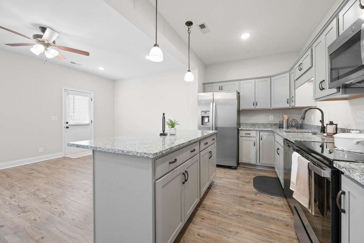 TENANT OCCUPIED - Step into modern living with this beautifully maintained 2- bedroom, 2. 5- bath townhome built in 2022. The inviting entry foyer leads to an open- concept main level featuring stylish LVP flooring throughout. The kitchen boasts granite countertops, a spacious island with a counter- height breakfast bar, and stainless steel appliances—including refrigerator, range, microwave, and dishwasher—perfect for everyday cooking or entertaining.
