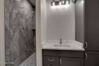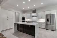 The heart of the home is the chef' s kitchen, featuring a large island with quartz countertops, perfect for gathering with family and friends. Kitchen also has an Eat- in area and built in pantry. Each bedroom on the main level has a private ensuite with a walk- in shower, ensuring ultimate comfort and privacy.