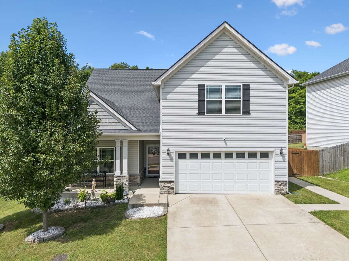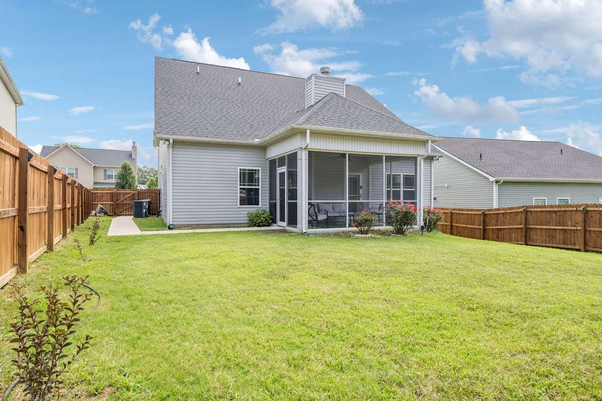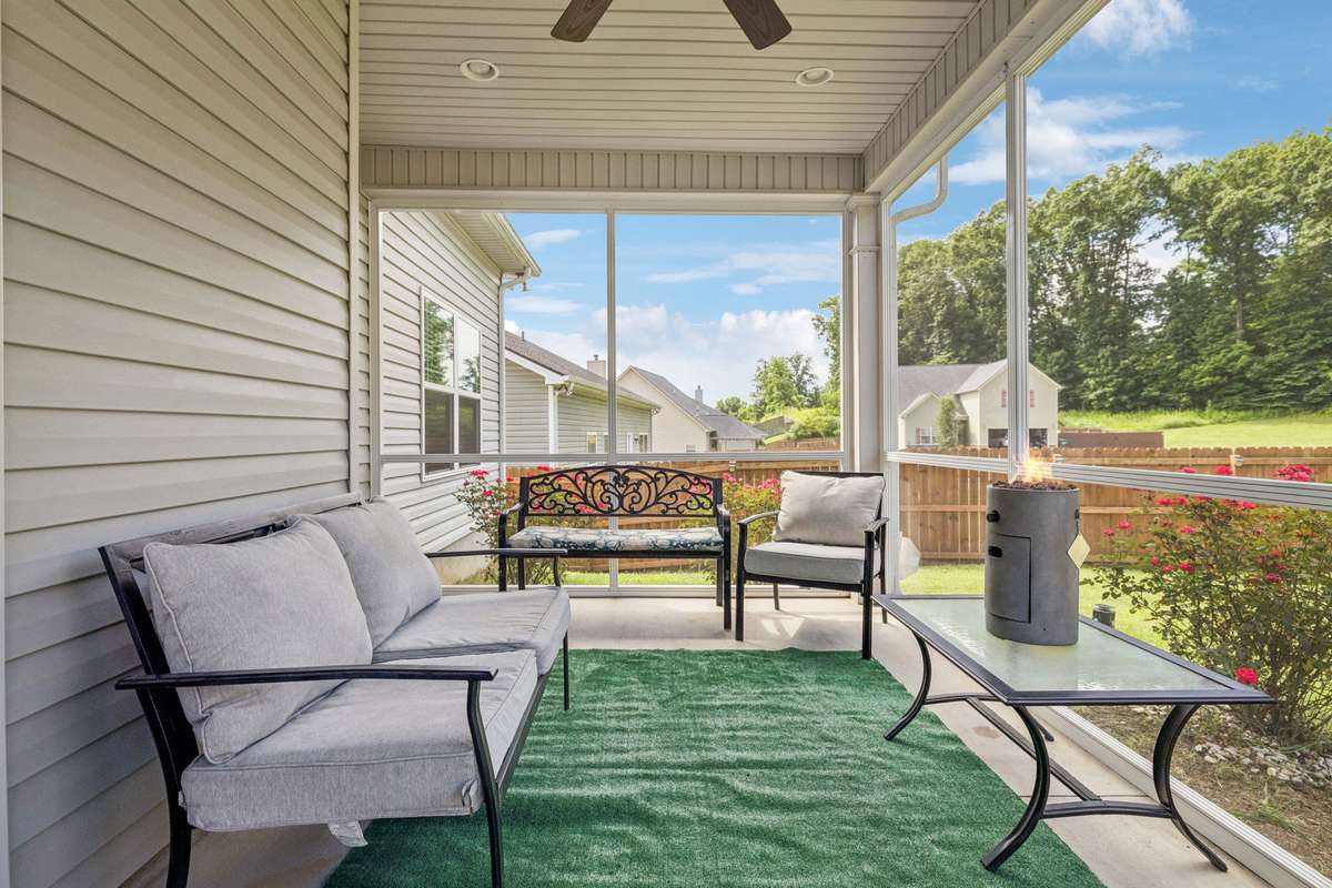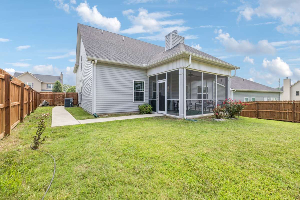 You' ll love the open- concept living area featuring a stunning stone fireplace, perfect for cozy evenings. The kitchen is a showstopper with gleaming granite countertops, a huge island, and ample workspace, ideal for both everyday meals and entertaining. Enjoy peaceful mornings and relaxing evenings on the screened- in back porch, overlooking a beautifully fenced yard. Thoughtful extras include 3 full bathrooms, ceiling fans in all rooms, a pantry, additional sidewalks for easy access, a water softener system, and a fully fenced backyard.