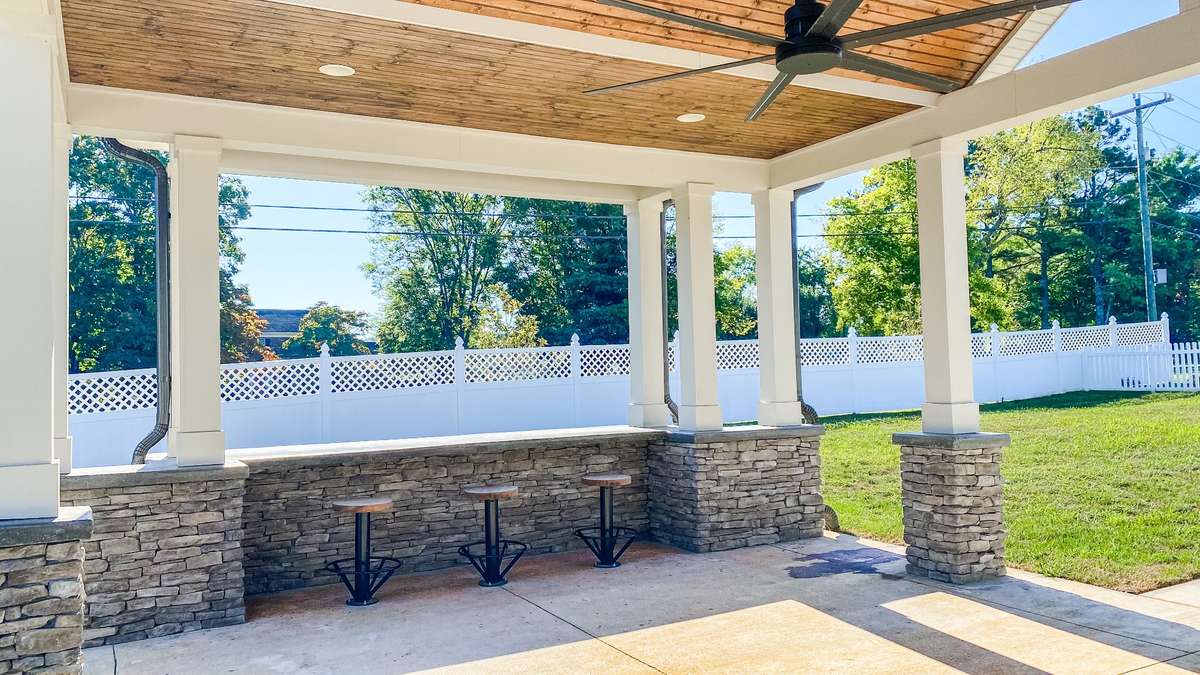 Upstairs, you' ll find a fourth and 5th bedroom with en- suite baths, as well as convenient walk out attic storage. Outside is the perfect retreat, with treelined backyard, and large patio. Perfect to enjoy the warm weather!