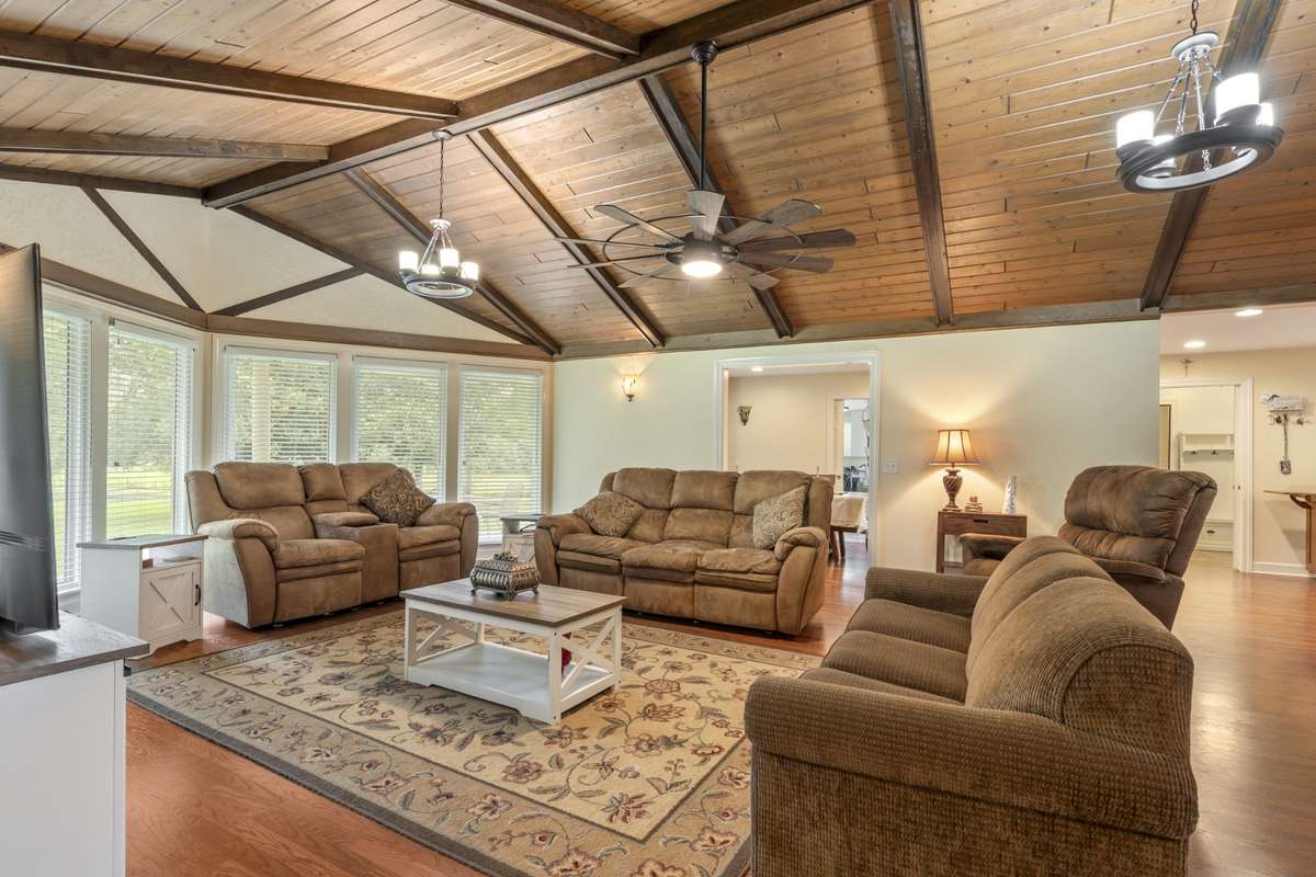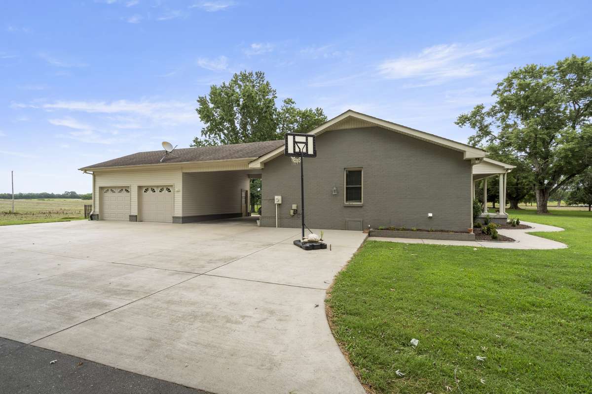 NEW PRICE! Nestled on approximately 6. 13 picturesque acres in one of Wilson County' s most desirable areas, this stunning 3, 400 sq ft brick, one- level ranch w/ a large covered front porch offers the perfect blend of privacy, space, & convenience. Enter a spacious foyer from the inviting front porch or use the back entry into the mud room/ drop zone for everyday ease. Set far off the road, a paved driveway lined w/ mature trees leads to a detached 2- car garage, connected by a breezeway- style carport that adds even more covered parking, storage, & an open patio—ideal for relaxing or entertaining. Inside, this 4- bed 2. 5- bath home welcomes you with a wood- plank vaulted ceiling with wood beams in the living room, a see- through gas fireplace, and a separate flex space. Bedrooms 2 & 3 each feature double closets and private 60 sq ft study areas, along with a Jack & Jill bath offering a tub/ shower combo and custom vanity. Additional highlights include a generous laundry room with a sink, a walk- in pantry, and a dedicated office. The expansive primary suite includes a large walk- in closet and a separate workout room, offering plenty of space to unwind. The primary bath features double vanities and a tiled shower. Thoughtful upgrades include hardwood and tile flooring, an extra- long kitchen island with granite countertops and tile backsplash, ductwork professionally cleaned, and an encapsulated crawl space with dehumidifiers for added energy efficiency and year- round comfort. Fruit tree remains on the property. At the back of the property, a well- maintained barn—with electricity available—Barn roof is 3 yr; is perfect for livestock, hobbies, or additional storage. Whether you' re seeking a private retreat, room to grow, or space for animals, this property truly offers it all—in the popular Carroll Oakland K- 8 school zone. Minutes to I- 40, I- 840, Hwy 25, Hwy 31, Nashville International Airport ( BNA) , 40 minutes to downtown Nashville, and just 10 minutes from all major amenities.