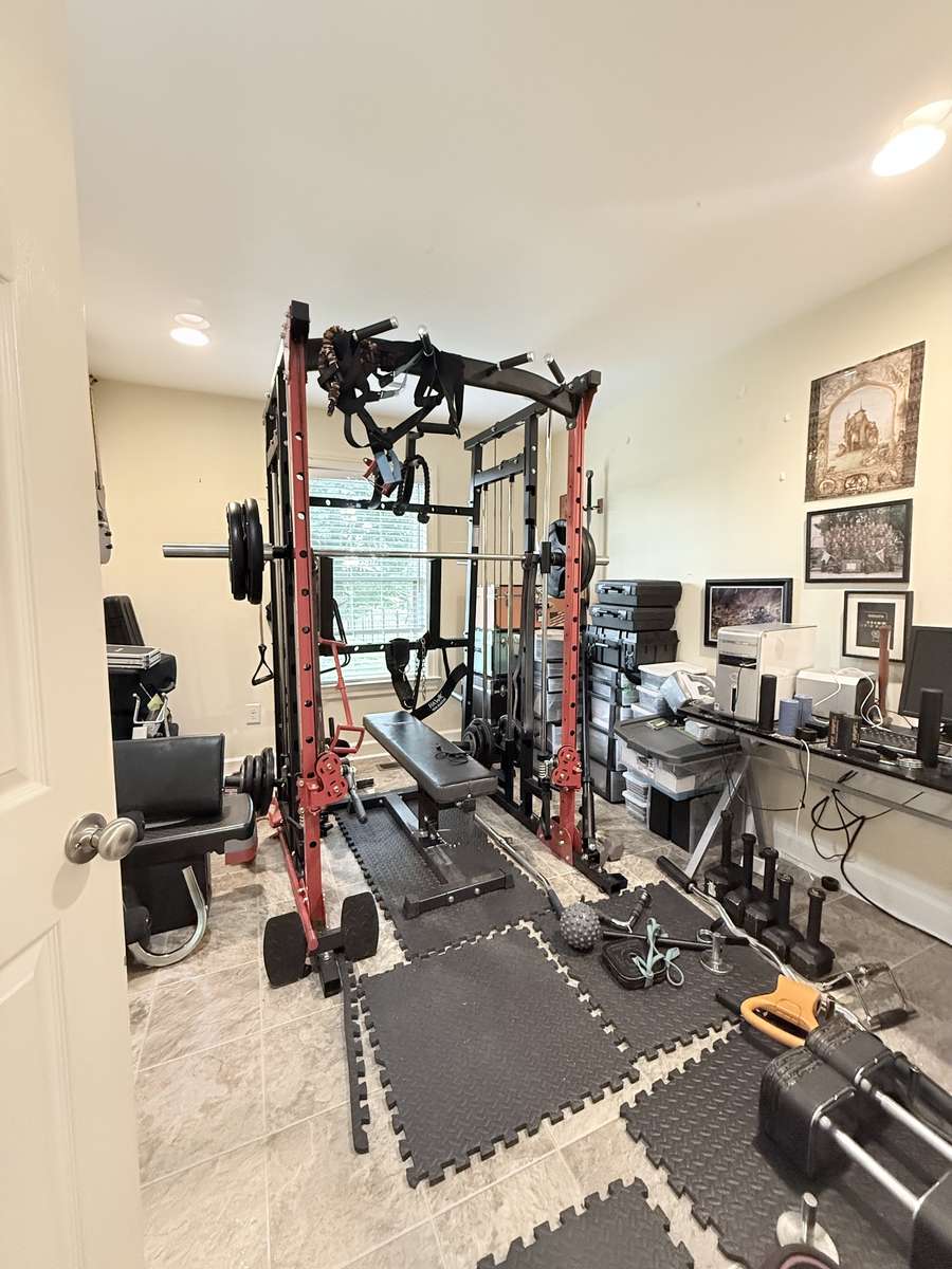 Primary Suite has a large walk-in closet WITH a "hidden room" used as a Workout Room;