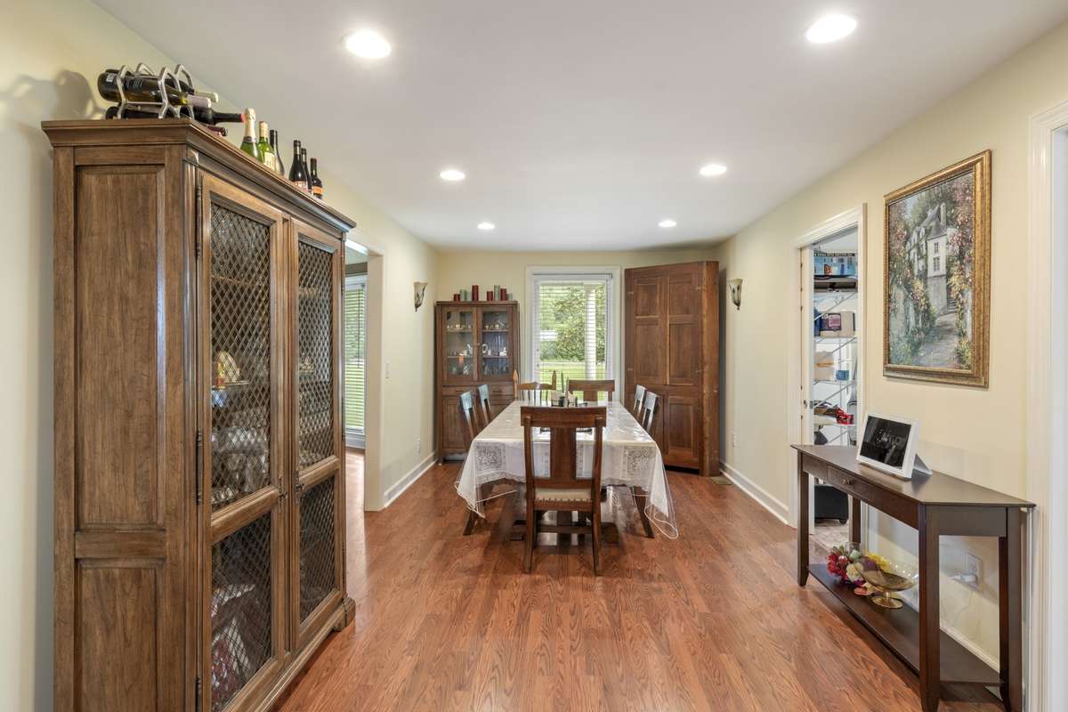Large Dining Room with hardwood flooring and open floor plan for easy access thru home