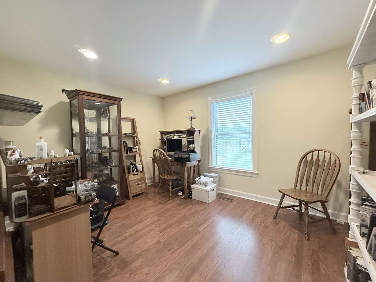 Flex/Office/Hobby space behind the See Thur Fireplace overlooking backyard; Recessed lighting