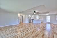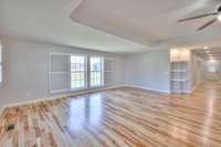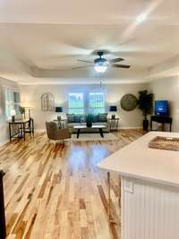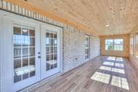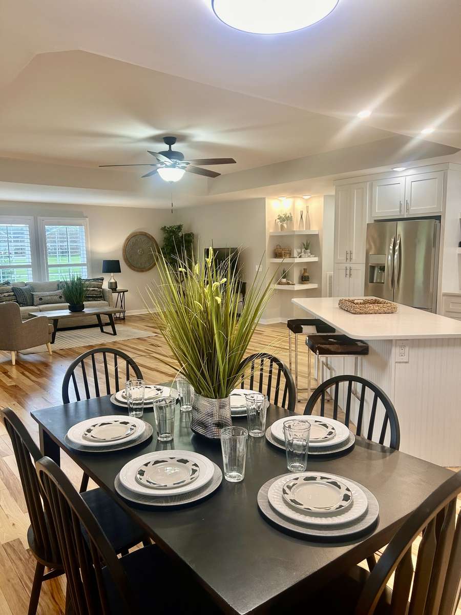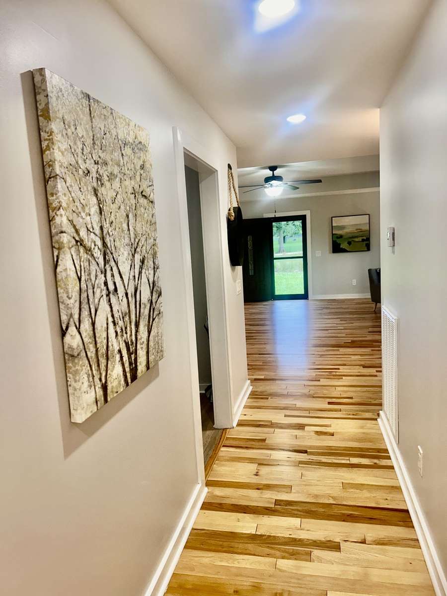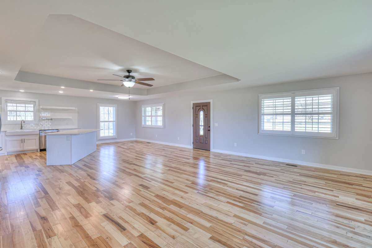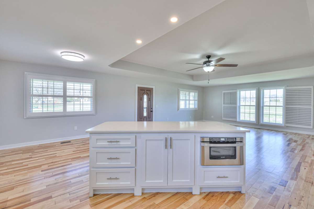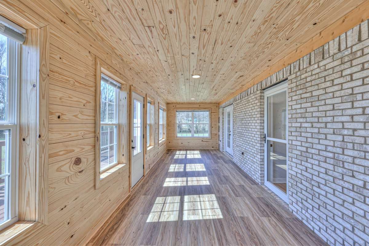 4. 875% Sellers and lenders rate buy- down special fixed for the life of the loan, one- level newer house on 2 2- acre " flat" lot in the Perrys Place subdivision with good restrictions and no HOA. Brick and cedar house with a big front porch and a large new deck in the back. New sunroom, new paint, new LED lighting, nice Granite, and custom cabinets in the kitchen and utility room. Lots of cabinets, and 36" doorways for easy furniture access. Nice accents in and outside of the house, Plantation blinds window treatments. Both guest bedrooms have Hide- A- Way beds. The main bedroom suite has a large walk- in tile shower with a pantry. Pull down stairs with lots of walking room, floored area for storage. Good size garage.