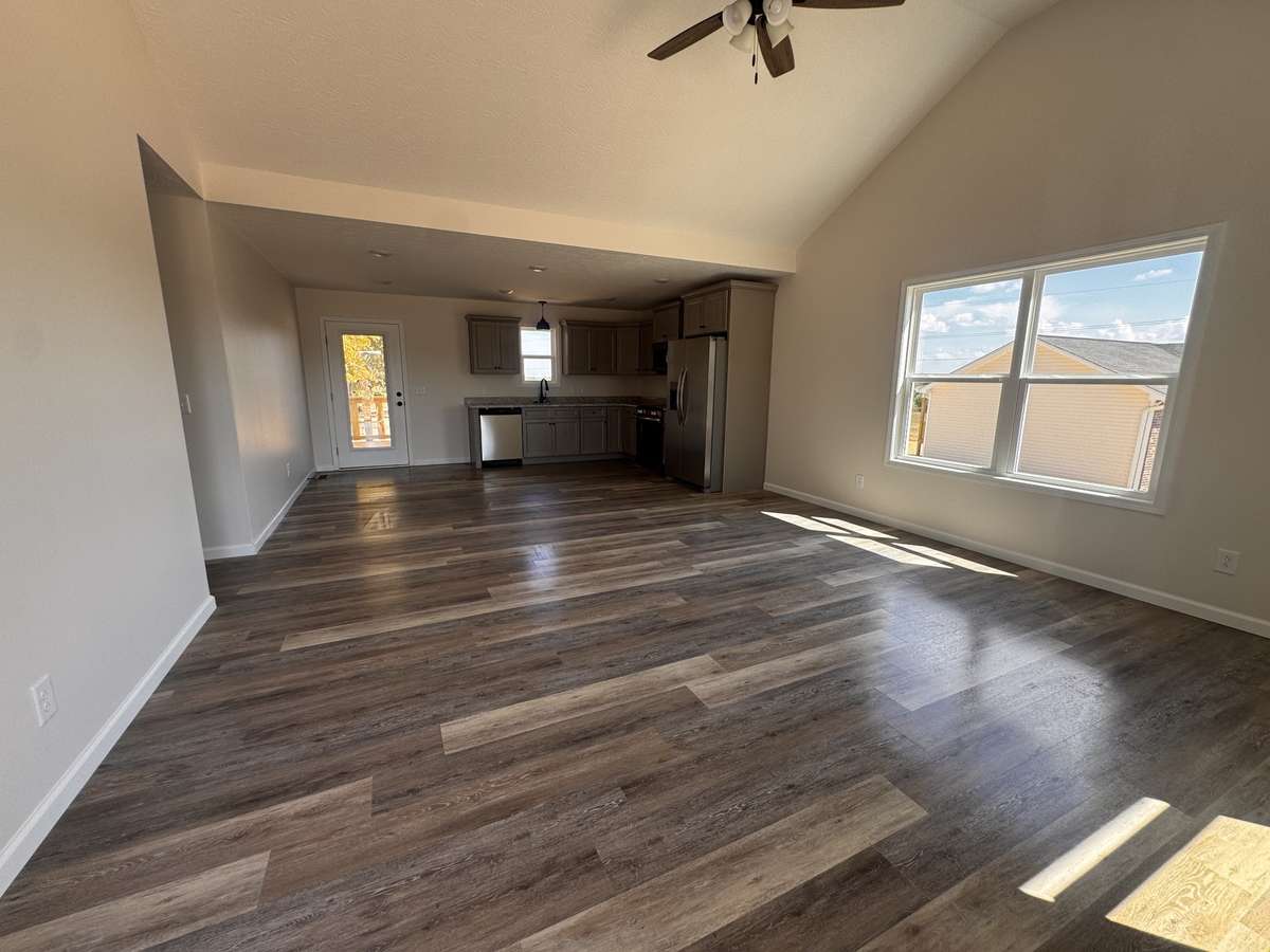 Welcome to this beautifully designed 1, 290 sq ft new construction home, featuring 3 spacious bedrooms and 2 well- appointed bathrooms. The brick front adds a touch of timeless elegance and curb appeal to the exterior, while inside, you' ll find a modern open- concept layout with granite countertops and LVP / LVT flooring, offering both style and durability throughout. The primary bedroom is a true retreat, complete with a large walk- in closet, perfect for organizing your wardrobe. Enjoy the convenience of two full bathrooms, designed with functionality and comfort in mind. Step outside to the expansive, covered deck – ideal for entertaining, relaxing, or enjoying outdoor meals year- round. Whether you' re hosting friends or just unwinding after a long day, this home offers both the space and features to meet your needs.