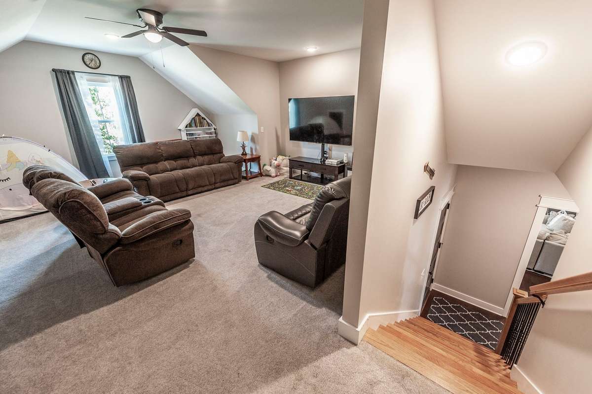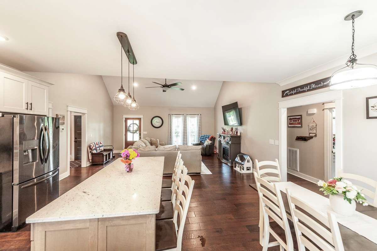 REDUCED! This beautiful farm home with white vinyl siding hung horizonal with black windows. Open concept with large island that has a microwave that is a drawer pull out. Sink has a window above that allows you to look at the pretty backyard with trees and open land. engineered hardwood floors, tile and carpet. Hugh shower and double vanity, large walk- in closet. Big pantry. Many upgrades to this home. Covered back and front porch. Bonus room over the garage. Storage area in bonus room. This home sits on 2. 13 acres. Great neighbors! Utility is very large with sink and extra cabinets. PROFESSIONAL PICTURES TO FOLLOW