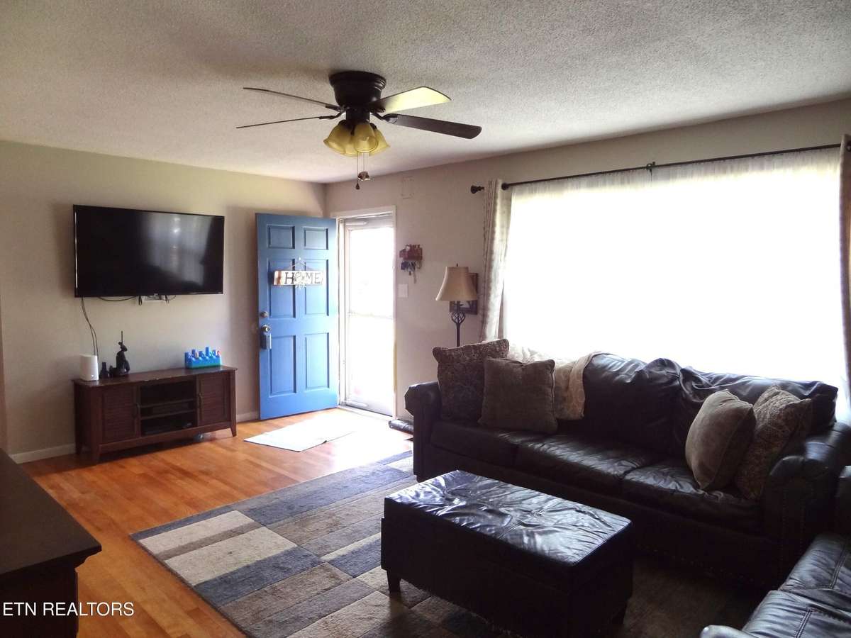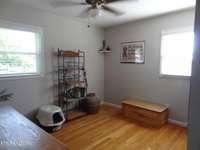 Nice 3 bdrm, 1 bath home features hardwood floors in the spacious living room with double window for natural lighting. The hardwood flooring extends into each of the 3 bedrooms with tile flooring in the updated bathroom. Large kitchen with room for dining, pantry closet, range, microwave and refrigerator all stay with the home. An open back patio overlooking the large green lawn that is chain link fenced with double gate entry for drive through purposes. The extended driveway allows for multiple parking in additional to the 1 car attached garage. Storage shed stays. Home has newer windows, New HVAC installed Jan 2025 and new plumbing.
