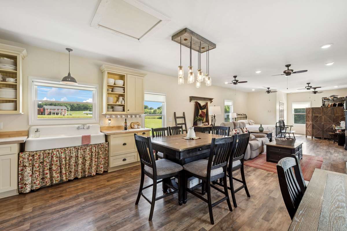 Build your dream home on this stunning 7. 63- acre property nestled in the heart of charming Hampshire, TN. This picturesque land backs up to a year- round creek and includes a versatile barn with a garage below and approximately 1, 070 square feet of finished living space —perfect for living on- site while you build. The barn is equipped with two bathrooms, kitchen, laundry room, storm shelter, and more.