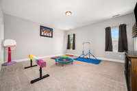 Upstairs, the expansive primary suite is a true retreat, featuring tray ceilings, dual windows, and a luxurious en suite bath with double vanities, a soaking tub, walk- in shower, and marble- style tilework. Four additional generously sized bedrooms offer plenty of space for family, guests, or a home office setup. The home also includes multiple bonus areas currently used as a gym, playroom, and office—easily adaptable to suit your lifestyle needs.
