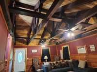 2. 57 ac with a lovely setting and a rustic home of 2BD / 1BA, approx 1000 sq ft, covered front decking – covered side decking & covered & a 11. 5 X 7. 3 screened in back decking- porch. Home is selling totally furnished. Rustic wood exterior & interior including the interior walls & vaulted ceilings. Ceilings with bar & wood plated support that lovely rustic feeling. Rustic–country kitchen with appliances, wood counter tops, large pantry and an eat in area for the dining table & chairs. LARGE living room ( 23X15. 5) for family gatherings for movies and board games. Home sits way off the road ( approx 200’) for that extra secluded & private feeling for you to run around naked. Over 325’ of paved & gravel county road frontage with easy access. Over 425’ of Salt Lick Creek Frontage – access. The terrain is a level to a gentle roll. Several areas to put in a garden or even another structure. Get out of the city and find your serenity. privacy – secluded, serene and loads of wildlife to find your world again. Ideal home in the ideal location for that starter home or your retirement home. Close to amenities and ST Parks & lakes. Buyer to do own due diligence & pertinent information.