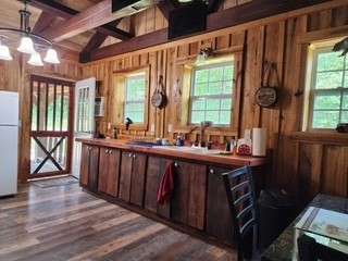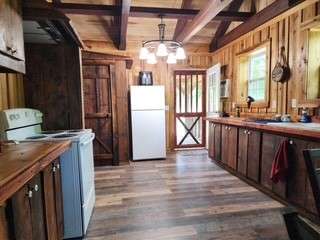 2. 57 ac with a lovely setting and a rustic home of 2BD / 1BA, approx 1000 sq ft, covered front decking – covered side decking & covered & a 11. 5 X 7. 3 screened in back decking- porch. Home is selling totally furnished. Rustic wood exterior & interior including the interior walls & vaulted ceilings. Ceilings with bar & wood plated support that lovely rustic feeling. Rustic–country kitchen with appliances, wood counter tops, large pantry and an eat in area for the dining table & chairs. LARGE living room ( 23X15. 5) for family gatherings for movies and board games. Home sits way off the road ( approx 200’) for that extra secluded & private feeling for you to run around naked. Over 325’ of paved & gravel county road frontage with easy access. Over 425’ of Salt Lick Creek Frontage – access. The terrain is a level to a gentle roll. Several areas to put in a garden or even another structure. Get out of the city and find your serenity. privacy – secluded, serene and loads of wildlife to find your world again. Ideal home in the ideal location for that starter home or your retirement home. Close to amenities and ST Parks & lakes. Buyer to do own due diligence & pertinent information.