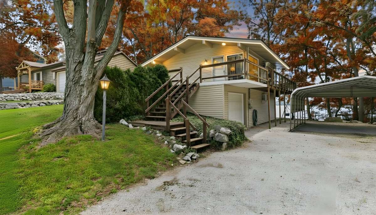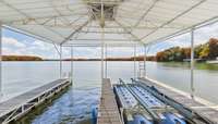 Majestically perched with panoramic views of Lake Barkley, this 1352 square- feet, two- story retreat is the quintessential lakeside escapade " Cozy Cottage On Lake Barkley" has 3 bedrooms and 1. 5 baths. Enjoy freshwater fun from your covered 2- slip deep water dock with boat lift and take in the scenery from multiple decks overlooking the lake. A Lakeside screen porch, a covered lakeside patio, a large front patio and a wall of sliding doors overlooking the lake create an inviting, open- air atmosphere. The home' s vaulted ceilings in the great room add a touch of grandeur, and nothing quite compares to the astounding sunrises here. Be swept away by this perfect lake getaway for your family or vacation rental with a kitchen outfitted with a charming eat- in bar area. At $ 475, 000, it' s the perfect blend of comfort in a serene lakeside setting on Lake Barkley.