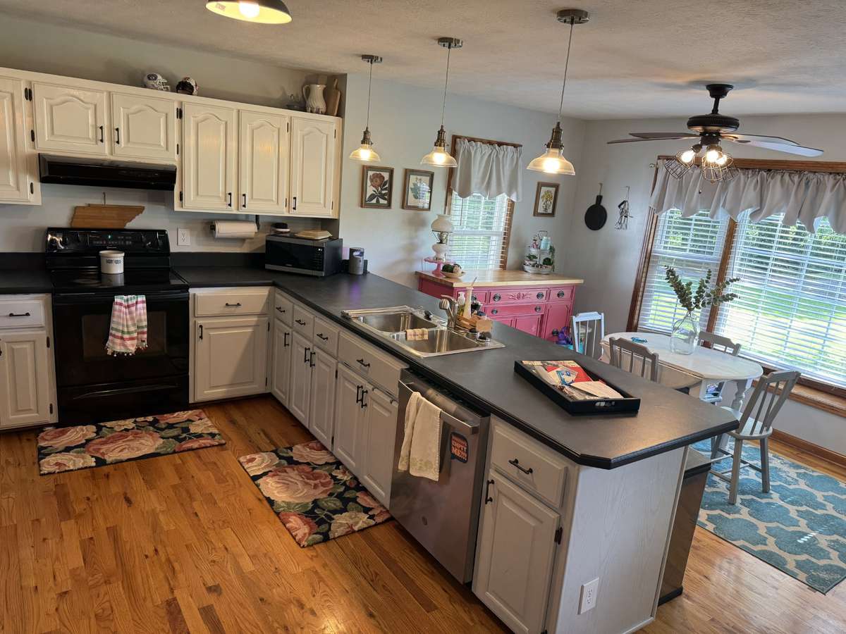 Nice 3 bedroom, 2 bath home at the end of the cul- de- sac. The living room has hardwood floors, a fireplace and gorgeous tongue and grooved wood ceiling. Very spacious kitchen, with seating at the counter, the breakfast nook, or the adjoining dining room. Owners bedroom has plenty of space with hardwood floors that lead to a tile floored bathroom with double vanity, a walk- in shower and an adjoining room that could be used for a nursery/ office or small fourth bedroom. With this beautiful home you will also find an attached two car garage with a bonus room upstairs for storage or with the addition of a heat & cooling unit, could be used for additional square footage. Outside you' ll find a covered front porch, concrete patio, and a concrete driveway. Make plans to tour this magnificent home!!!