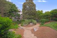 I-440 to Hillsboro Rd. Left on Woodmont Blvd First right into Hillmont. Proceed through gate and follow road around as it goes to the left. Park on right before garages (about two buildings down) Building on left facing Hillsboro Rd. Ground level unit.