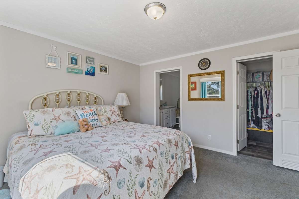 The primary bedroom has an ensuite bath and walk-in closet.