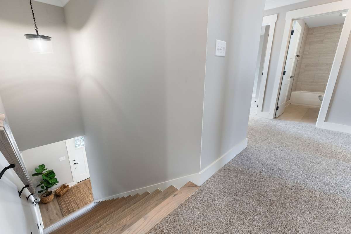 The two- story floor plan for this modern home offers a spacious and inviting layout, perfect for comfortable living and entertaining. As you enter the main floor, you' ll be greeted by a stunning Great Room and Kitchen combination. The Great Room boasts ample space for relaxation and socializing, with large windows that fill the room with natural light and provide a view of the outdoors. The Kitchen is a chef' s dream, featuring a generous island at its center, providing both additional prep space and a gathering spot for family and friends. Heading upstairs to the second level, you' ll find the Master Bedroom, a serene retreat with its private en- suite bathroom and walk- in closet. Additionally, there are two secondary bedrooms on this level, offering plenty of room for family members or guests. The convenience of a Laundry Room on the second floor makes daily chores a breeze, eliminating the need to carry laundry up and down the stairs. But that' s not all—this floor plan also includes a Bonus Room upstairs, providing flexible space that can be used as a 4th bedroom, home office, playroom, or even a home gym. This two- story design offers the perfect combination of functionality and style, making it an ideal choice for modern living.